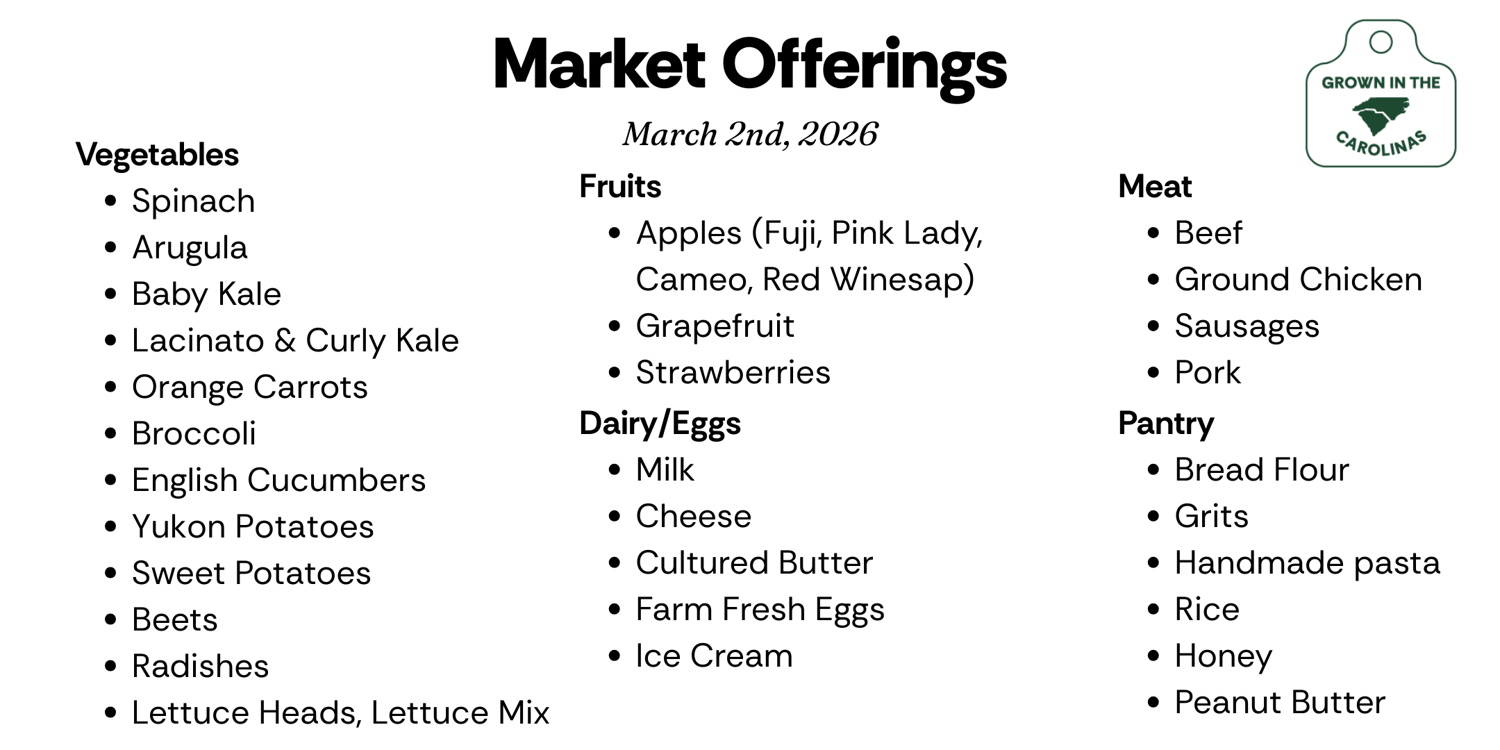 We focus on what is being grown seasonally by our farmers and hand select a curation of products that are popular at the market.